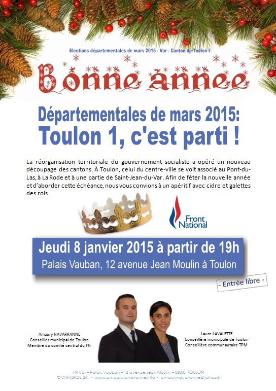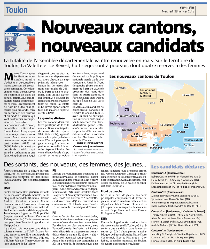 Je porterai les couleurs de notre mouvement avec Laure Lavalette dans le 1er canton de Toulon: Pont-du-Las, centre-ville, La Rode et la partie ouest de Saint-Jean-du-Var.