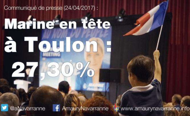 Marine Le Pen en tête à Toulon : 27,30 %, un coup de tonnerre !