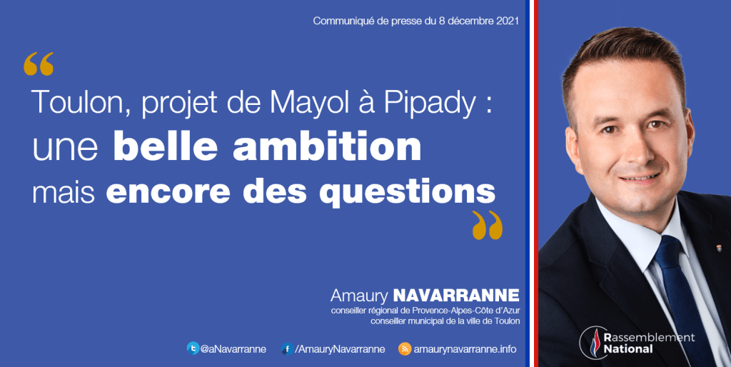 Communiqué de presse d’Amaury Navarranne, conseiller régional de Provence-Alpes-Côte d’Azur, conseiller municipal et responsable du Rassemblement National de Toulon