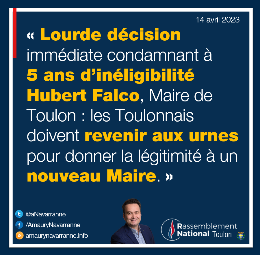 Sans commenter la décision en elle-même, les faits ont semble-t-il été jugés suffisamment graves pour un tel prononcé. Hubert Falco, dont on imagine l’émotion après 20 ans au service de notre ville, a toujours affirmé que les Toulonnais, l’ayant réélu en 2020, l’avaient jugé innocent dans cette affaire aux faits pourtant alors méconnus. La décision grave qui vient de tomber impose moralement la convocation des électeurs pour une nouvelle élection municipale : il n’est pas pensable de rester dans une situation d’une telle ambiguïté. Les Toulonnais doivent à nouveau s’exprimer sur qui doit à présent diriger leur ville.