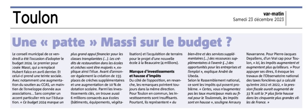 Communiqué de presse d’Amaury Navarranne, conseiller régional de Provence-Alpes-Côte d’Azur, conseiller municipal et responsable Rassemblement National de Toulon